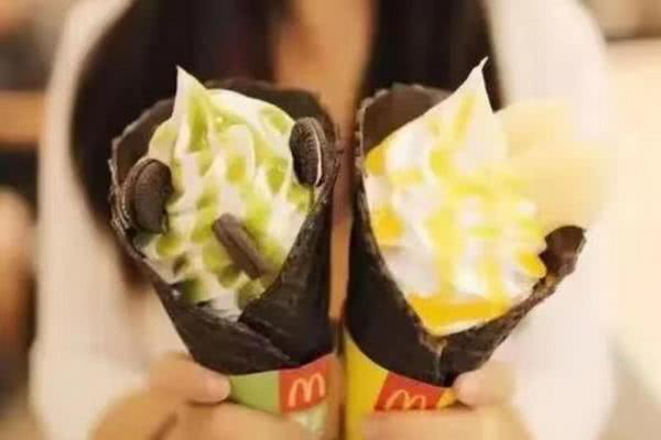 无论是在肯德基还是在麦当劳,都有甜筒冰激凌的售卖,这是我国快餐店中没有的一种福利。不过肯德基和麦当劳的冰激凌有着不小的差别,据说肯德基的甜筒冰激凌是由奶粉冲制的奶制作而成的,而麦当劳的甜筒冰激凌则是由纯奶制作而成的。肯德基的甜筒有香精的味道,麦当劳的则是又浓浓的奶味。其实我个人感觉这两家的冰激凌没有太大的区别,不过我觉得麦当劳甜筒的脆皮更脆一些,喜欢吃脆皮的朋友可以选择麦当劳。麦当劳中的麦旋风也是很受大众喜欢的一种甜品,有机会大家可以品尝一下。
